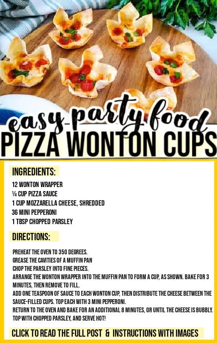 Pizza Wonton Cups are a great finger food that people love! Delicious and flavorful pizza appetizers are simple to make, and are perfect for an afternoon snack, or party appetizer.
