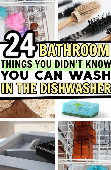 The bathroom is my favorite place to clean up using the dishwasher. There are so many things that you can simply toss into the dishwasher for a highly effective clean that I used to spend hours soaking or spraying and scrubbing.